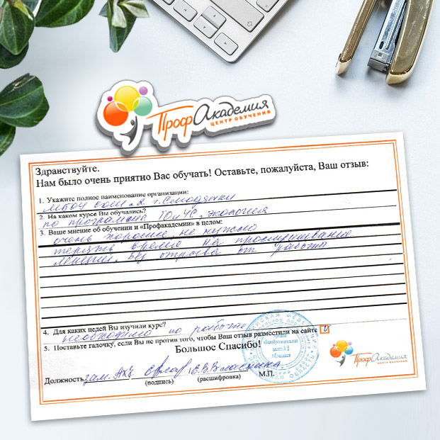 После успешного окончания обучения вы получите документы установленного образца. Высылаем по почте заказным письмом.