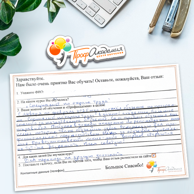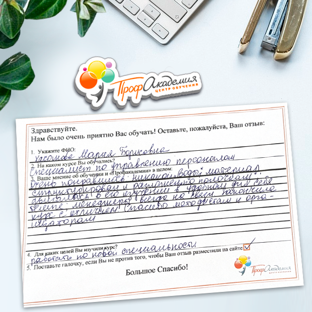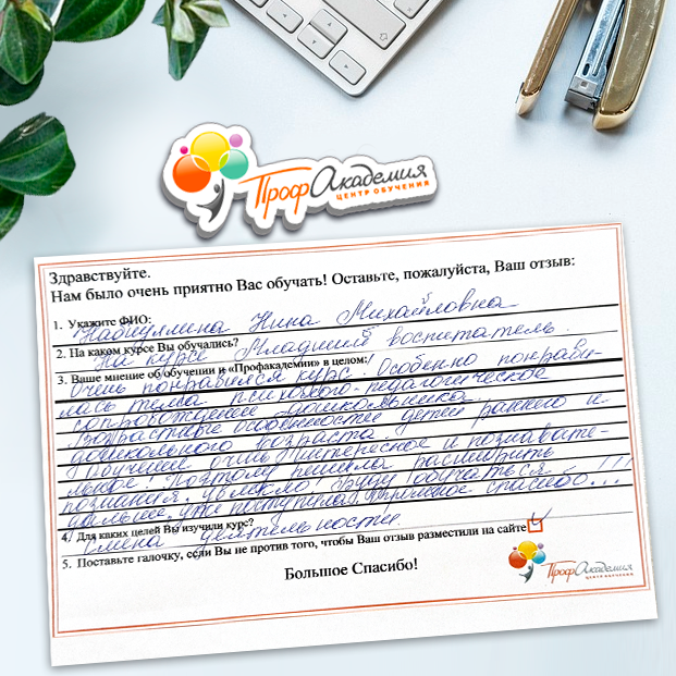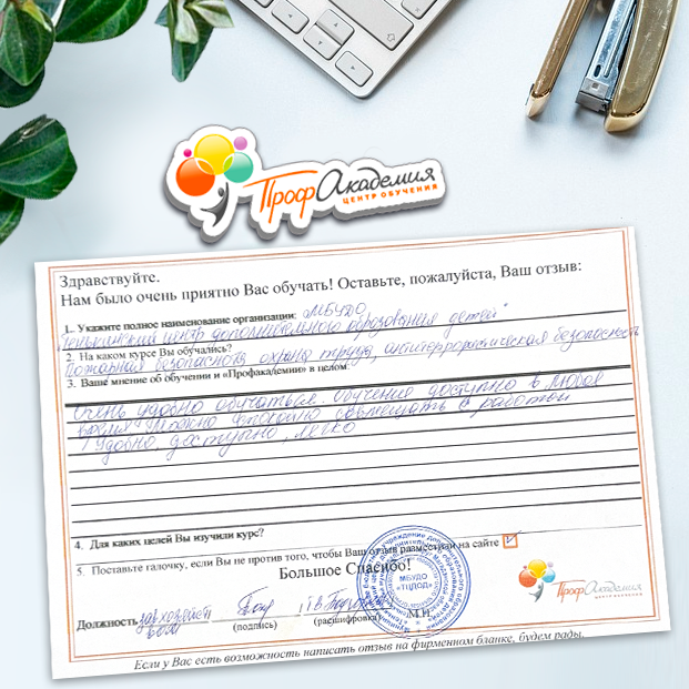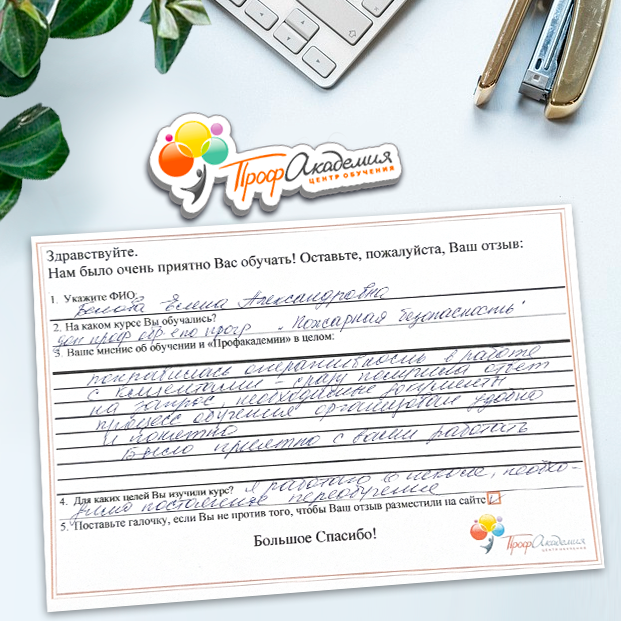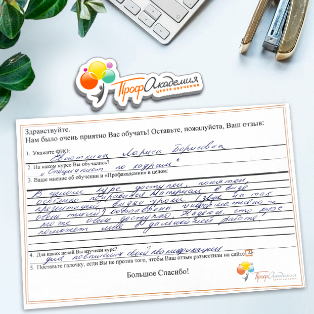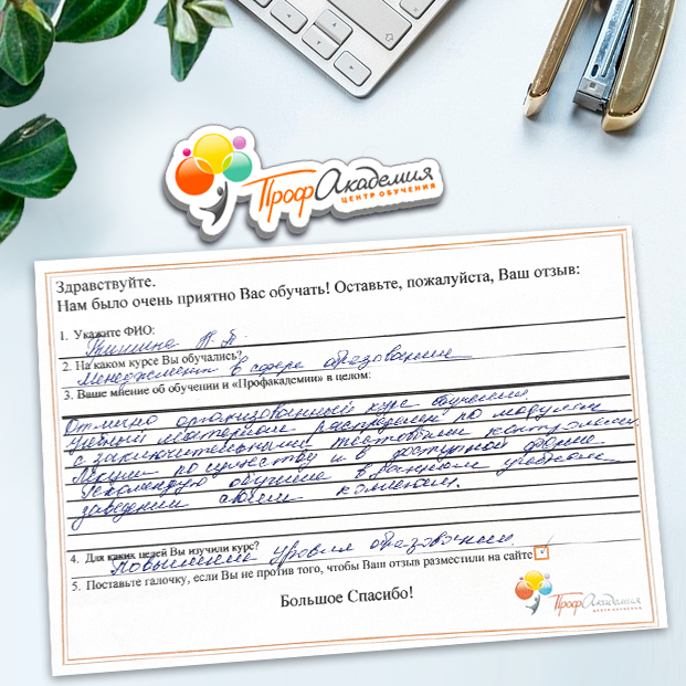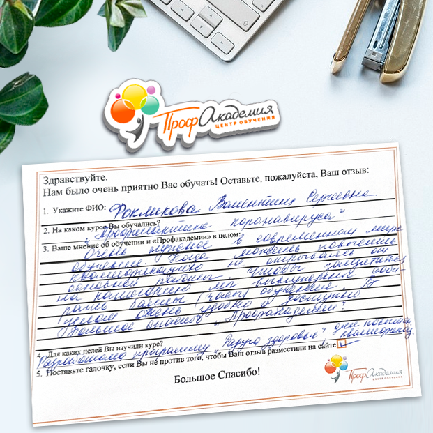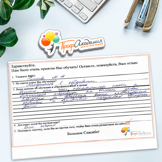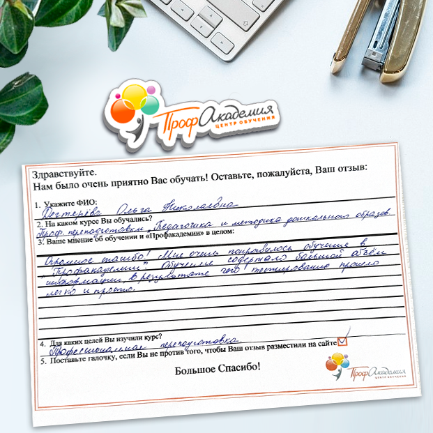 Очень приятно обучаться в "Профакадемии", все очень точно, быстро, внятно. Получила свое удостоверение, спасибо большое.